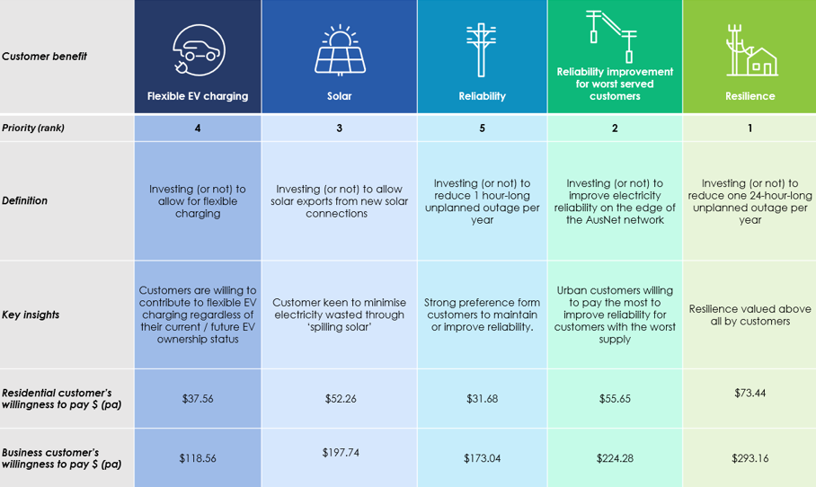 - AusNet undertook a study to quantify the value customers place on a range of benefits that are not currently captured in investment decisions.